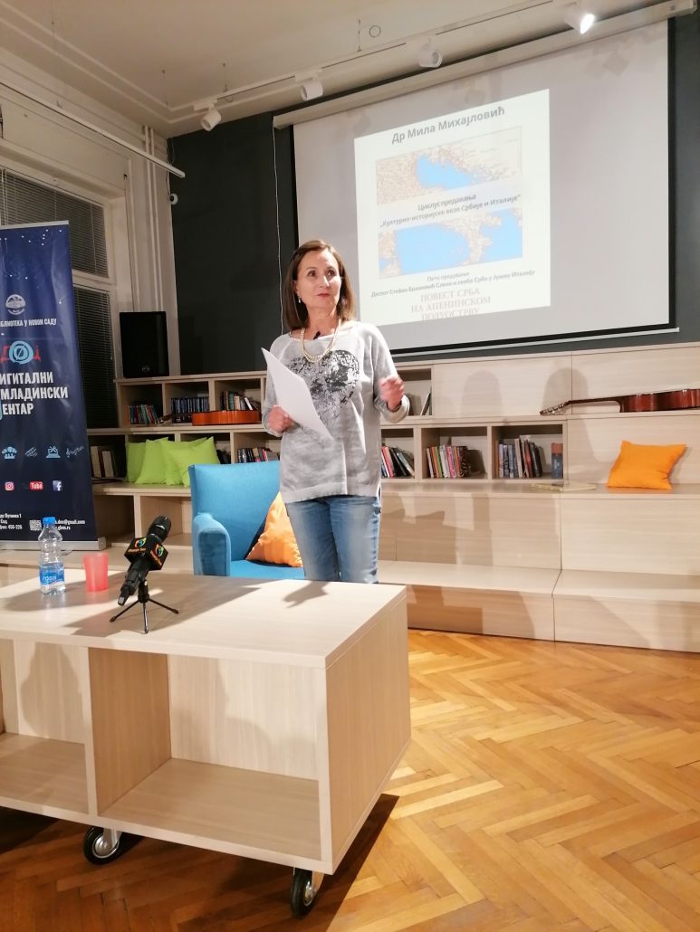 У организацији Културног центра Војводине „Милош Црњанскиˮ, др Мила Михајловић одржала је у Дигиталном омладинском центру пето предавање на тему „Деспот Стефан Бранковић Слепи и сеобе Срба у Јужну Италијуˮ из циклуса предавања „Културно-историјске везе Србије и Италијеˮ.