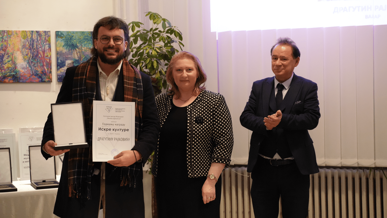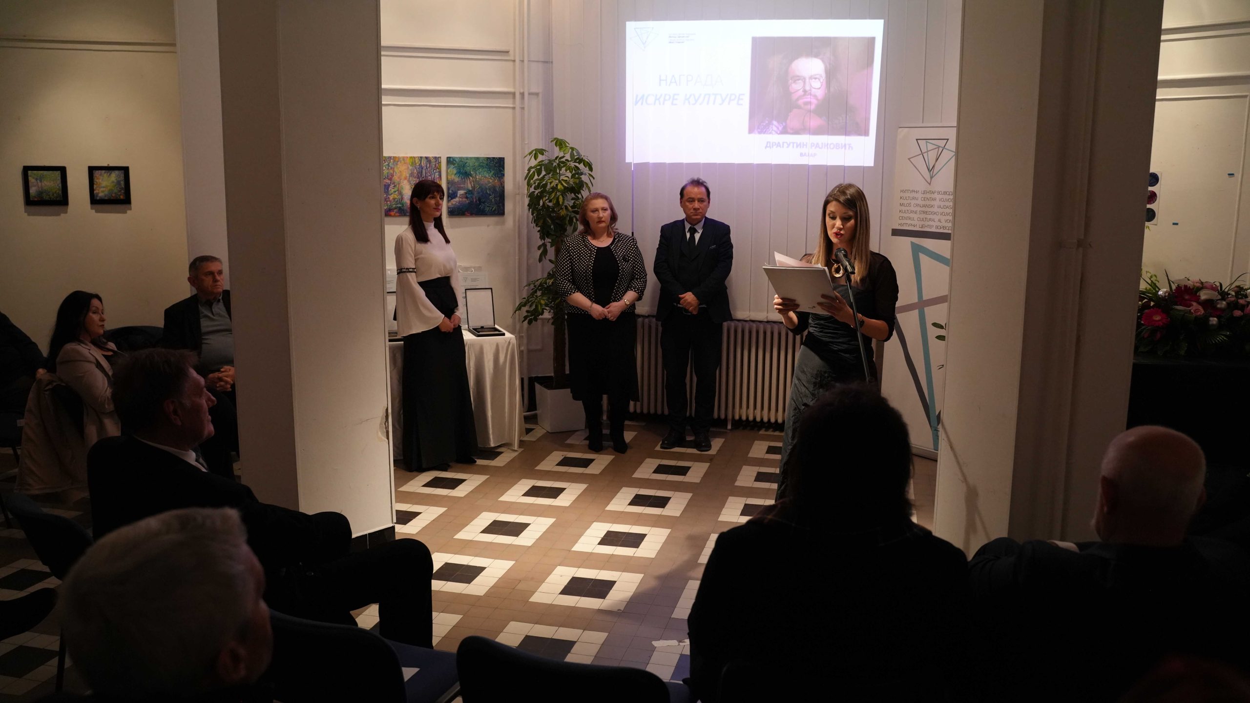 На почетку свечаности присутнима се обратио магистар Ненад Шапоња, в. д. директора ове институције, истакавши: „Овај догађај није обичан, није конвенционалан, већ је круна нашег рада. Као што знате, Културни центар Војводине ‘Милош Црњански’ ових година покушава да види оно што је најбоље и најзначајније у нашој култури, тако је и бирао програме, било да су то књижевни, ликовни, музички програми, било да снимамо документарне филмове, па као за филм о Сави Шумановићу добијемо 62 награде у свету. Налазимо се сада у овим малим, топлим просторијама и дивно је што можемо угостити најзаслужније људе у појединим областима културе. Чак и када је година оваква каква је, ипак је за нас свака година права баш зато што имамо само ово време и зато велико хвала свима вама који сте посвећени култури, који сте посвећени свом унутрашњем смислу.“