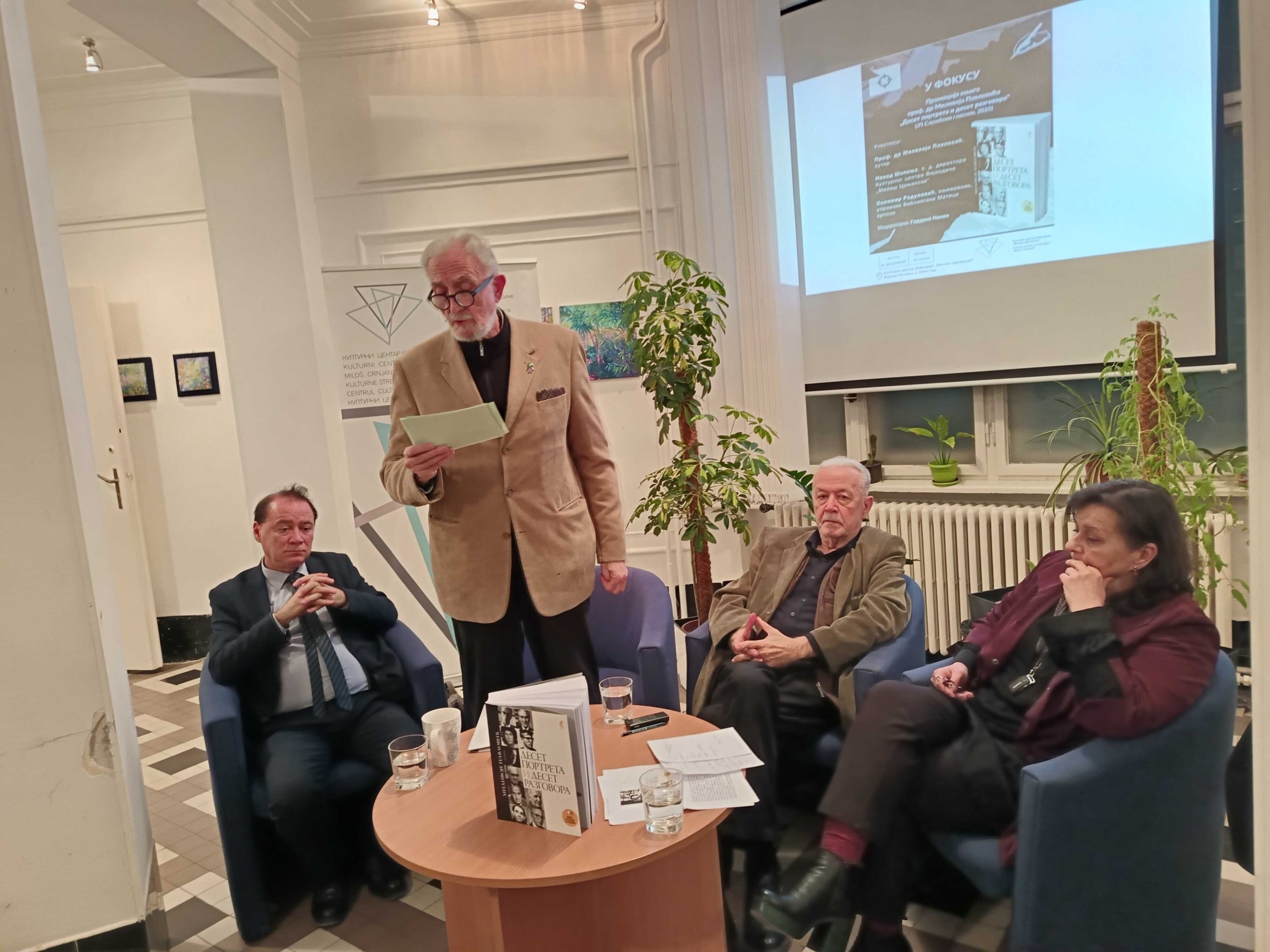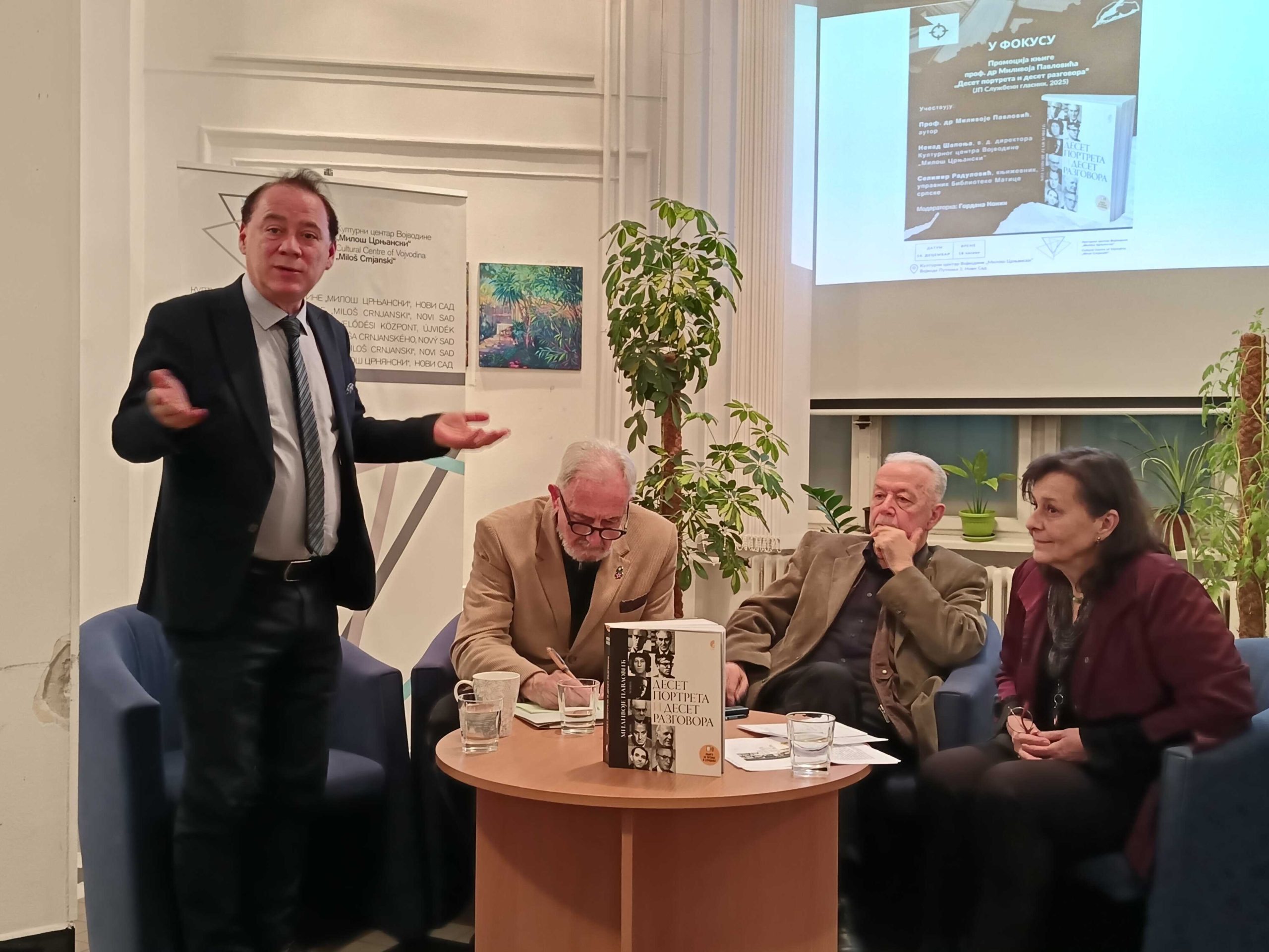 Вечерас је у Културном центру Војводине „Милош Црњански” представљена књига професора др Миливоја Павловића, књига која се и чита и слуша, „Десет портрета и десет разговора”, коју је ове године објавио „Службени гласник”.